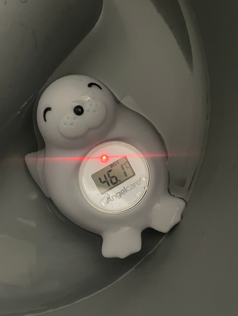 You can use an elbow or a wrist to check the water’s a lukewarm temperature, but honestly having a thermometer saves you that time to roll up your sleeve, albeit for 2 seconds, so you can get the job of washing baby done, so you can then feed her, and then for her to drift off to sleep, only a sleep deprived parent could dream of, as our’s does when she’s had a warm comforting bath.