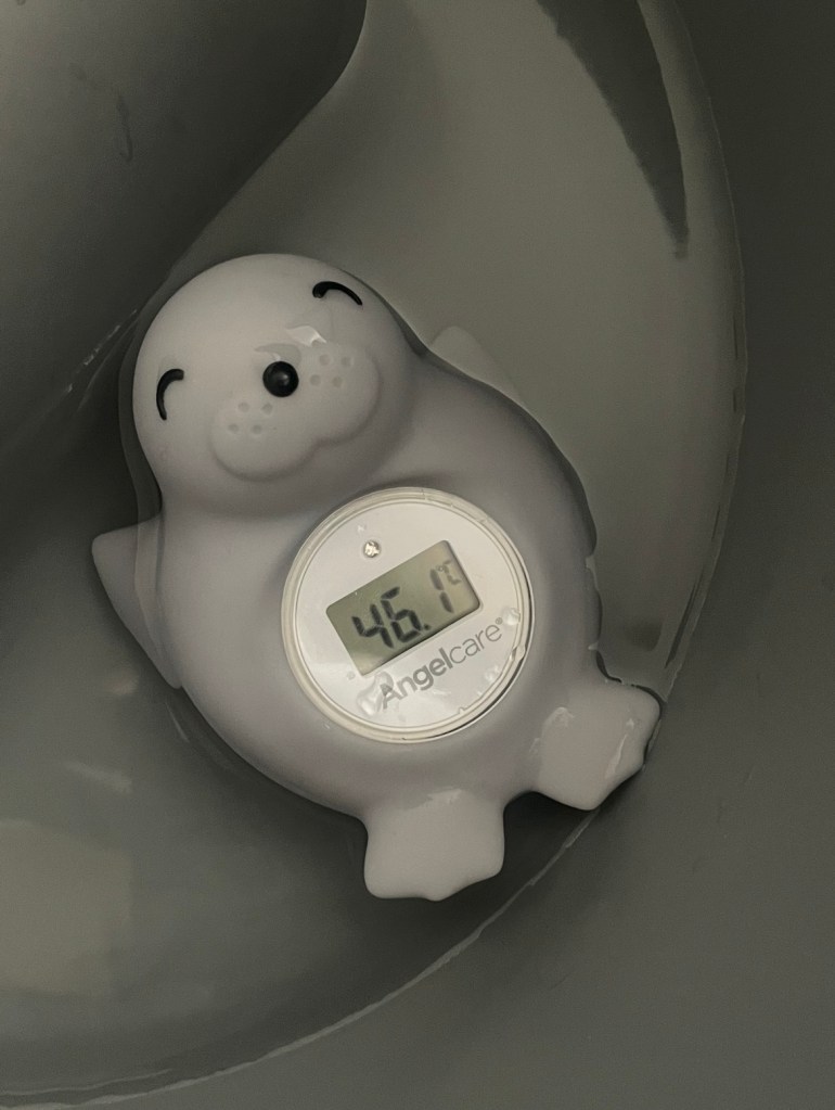 We bought Mr Seal, as I dubbed him, 🦭(who knew there is a seal emoji by the way, I never noticed before??) here to navigate this issue in order to insure that the room baby was in was the optimal environment for her, heat wise. Also, we used it for her bath water to check that it wasn’t too hot for her when we gave her, her initial baths. Once we got used to what the temperature should feel like for her baths, we stopped using it, but it’s still good to have around just in case.
